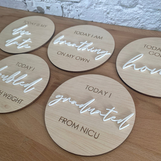Premature Birth Baby Milestone Discs - Laser engraved with acrylic