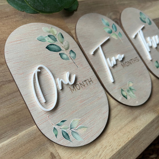 Baby Milestone Discs – UV Printed Wooden Oval Set - Botanicals