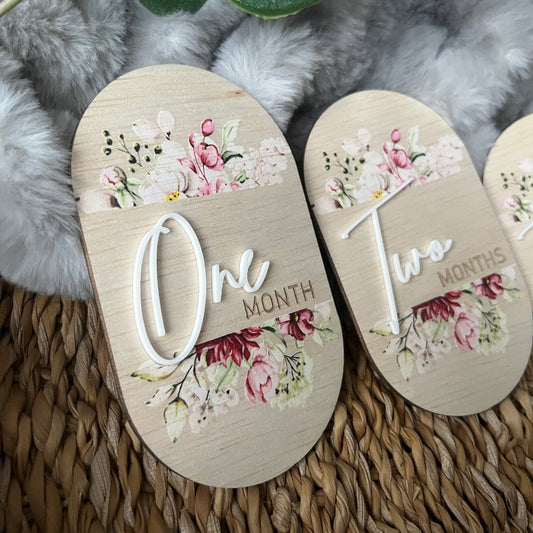 Baby Milestone Discs – UV Printed Wooden Oval Set - Pretty Florals