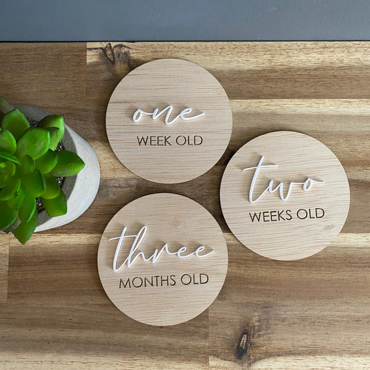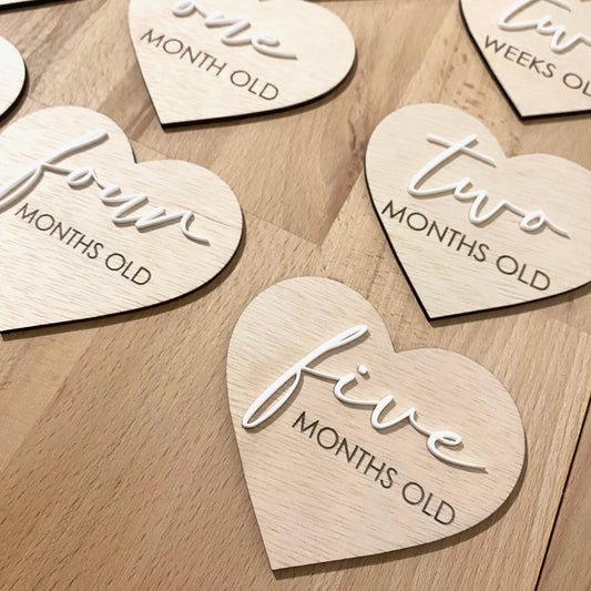 Baby Milestone Discs - Heart Shaped - Laser engraved with acrylic