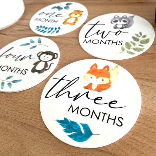 Baby Milestone Disc - Cute Jungle Safari Animals - acrylic